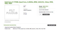 9月18日消息,Intel已经正式宣布了第七代Kaby Lake处理器,不过首批的是低功耗移动处理器,标压版移动处理器和桌面处理器将会在2017年一月份正式发售,目前国外已经有网站将Intel Core I7-7700K上架。