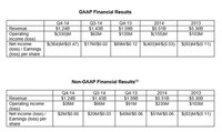根据美国会计通用准则(GAAP),AMD 2014年第四季度收入12.4亿美元,同比下滑22%%,环比下滑13%%;毛利率29%%,环比下滑6个百分点,主要是第二代Trinity APU清理库存花费了5800万美元所致;净亏损3.64亿美元,而上年同期盈利8900万美元,此前季度盈利1700万美元。